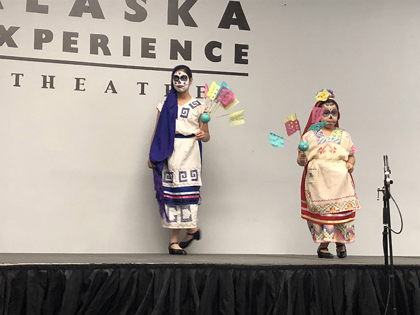 Students from kindergarten to sixth grade participated in the creation of our elaborate altar showcase: from canvas paintings, to poetry, dedications, and artistic renditions, it was a beautiful showcase. The event itself was held at the Experience Alaska Theatre.