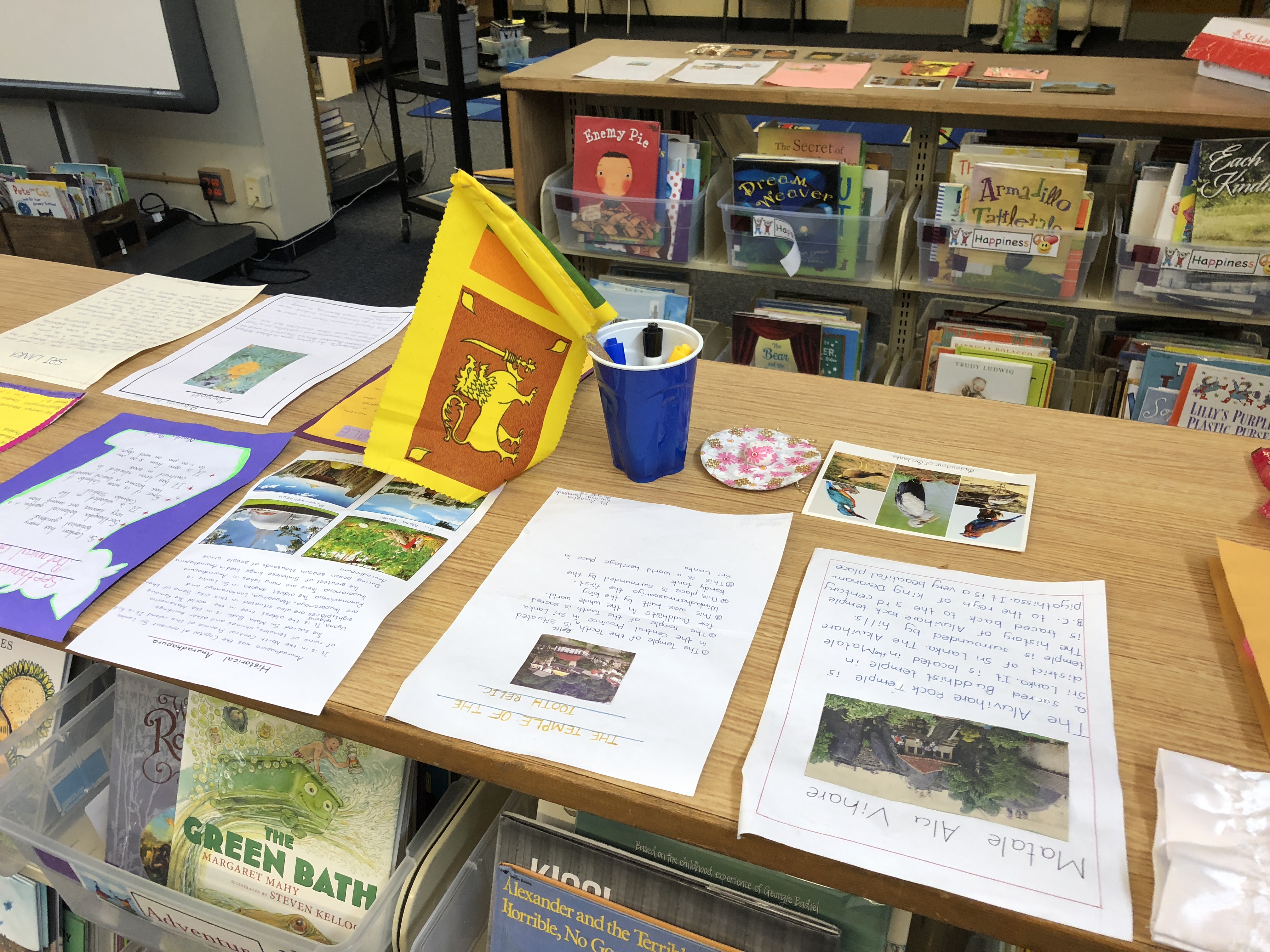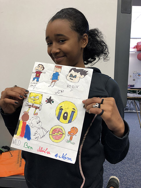Our friends from Morocco sent us a package that included thank you cards for our donated books, writing guides to write our names in Moroccan Arabic and the native Moroccan language, as well as art to share parts of their culture.